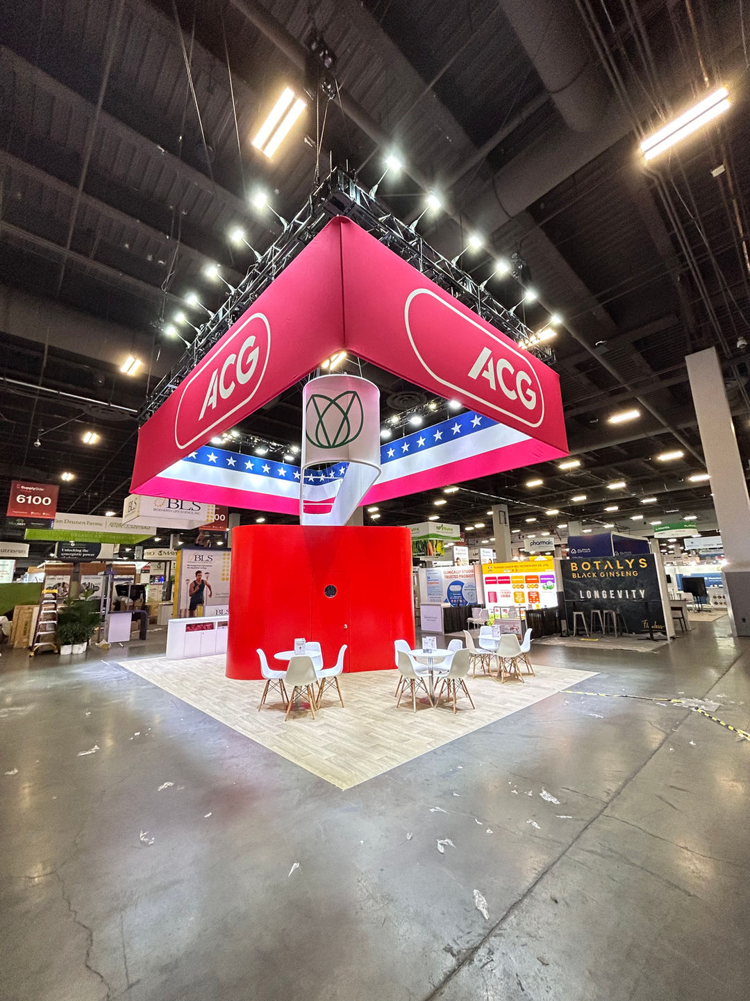Role of KOTLA-USA This impressive and large-scale booth was designed and constructed by KOTLA-USA. As a premier global exhibition specialist, KOTLA-USA was tasked with creating a high-impact, professional environment that reflects ACG's status as an industry leader. KOTLA-USA managed the entire project, from the engineering and fabrication of the massive hanging structures to the final on-site installation and finishing, ensuring ACG had a dominant and welcoming presence to host partners and clients at the event.