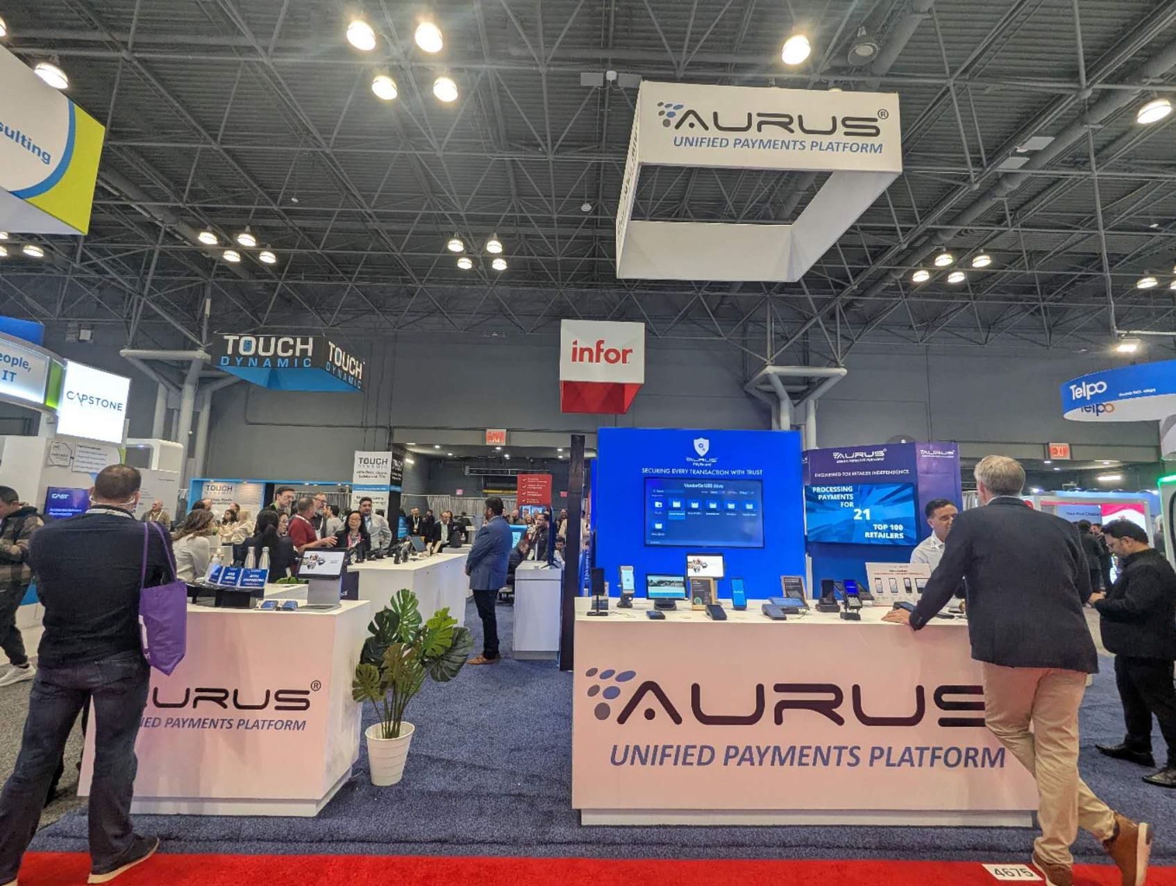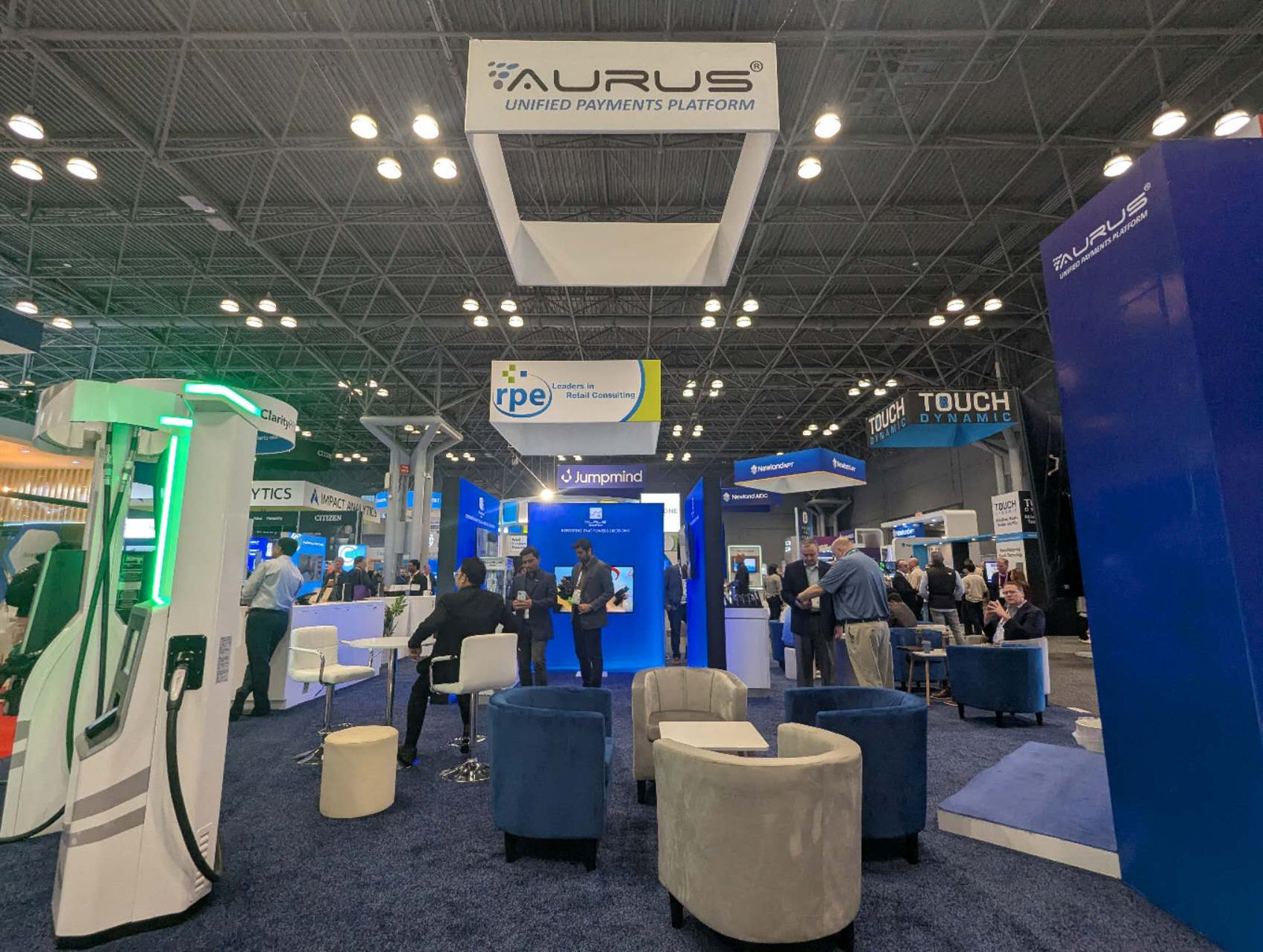 For NRF 2026, KOTLA-USA delivered a refined and highly functional exhibition space for AURUS, designed to reflect the brand’s leadership in unified payment technology. The booth architecture emphasizes clarity and openness, featuring a clean structural layout, a large overhead hanging sign for long-range visibility, and well-defined zones for demonstrations and business meetings.