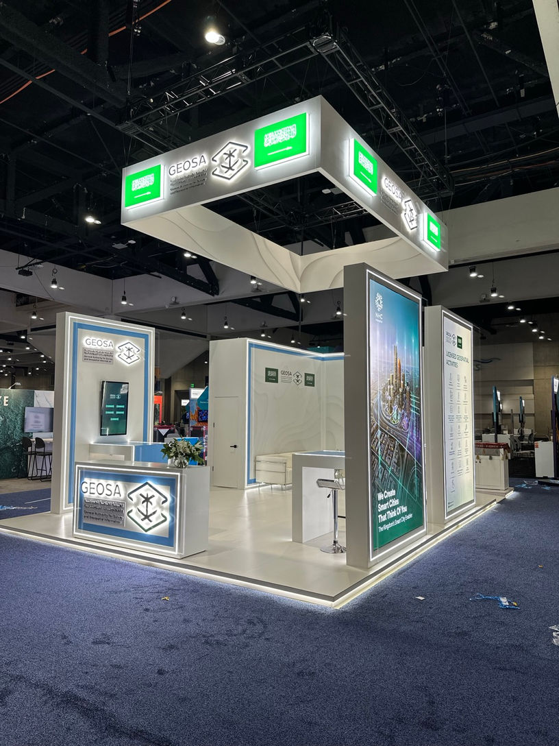 The booth’s primary color scheme of white and light blue was tastefully combined to create a professional, high-tech atmosphere that aligns perfectly with GEOSA’s field of expertise.