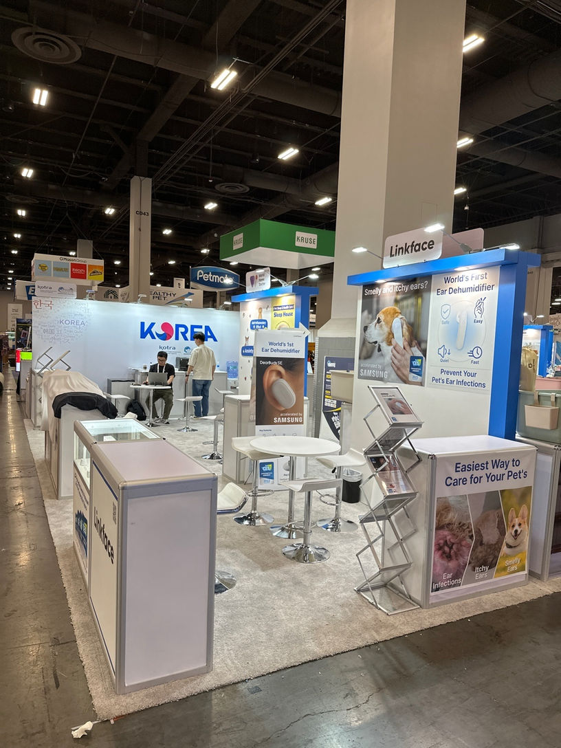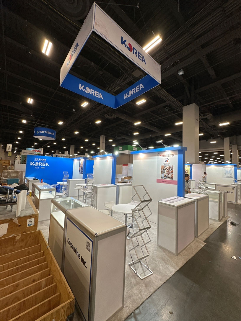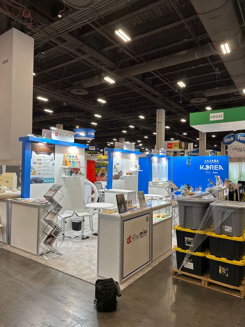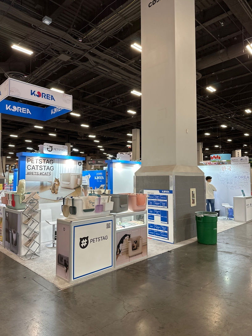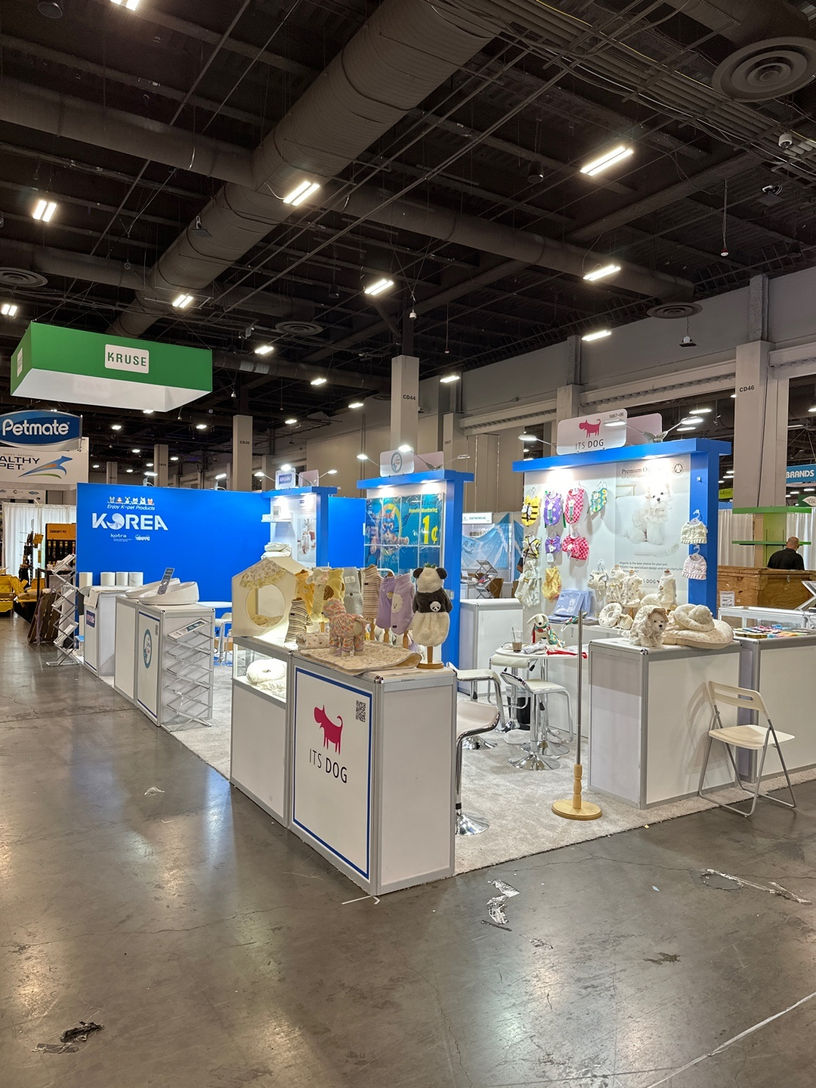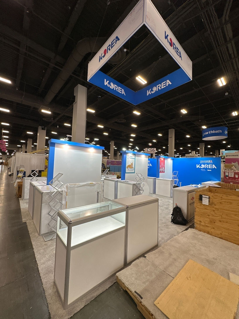 This is the Korea Pavilion organized by KOTRA at the Association of Korea Pet Product Export event — designed and built by KOTLA-USA.